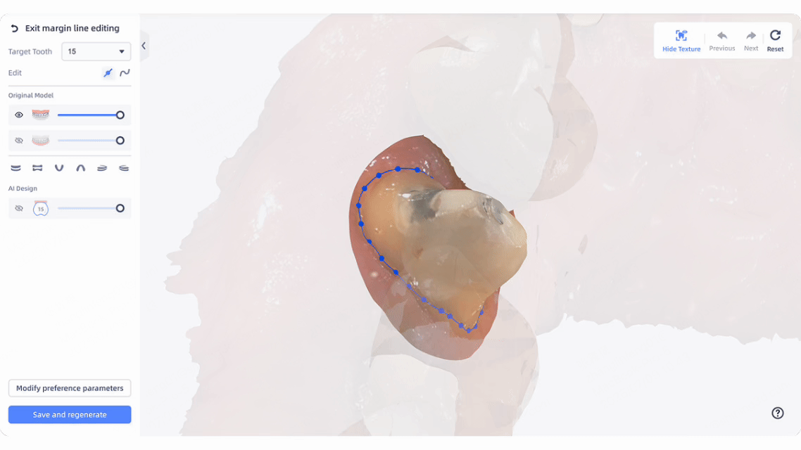 Intelligently generates dental crowns, auto-filling undercuts with meticulous precision.